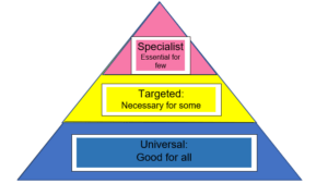 Within Knowsley Central School, the occupational therapy service is delivered across 3 distinct tiers of therapy provision; universal, targeted and specialist.